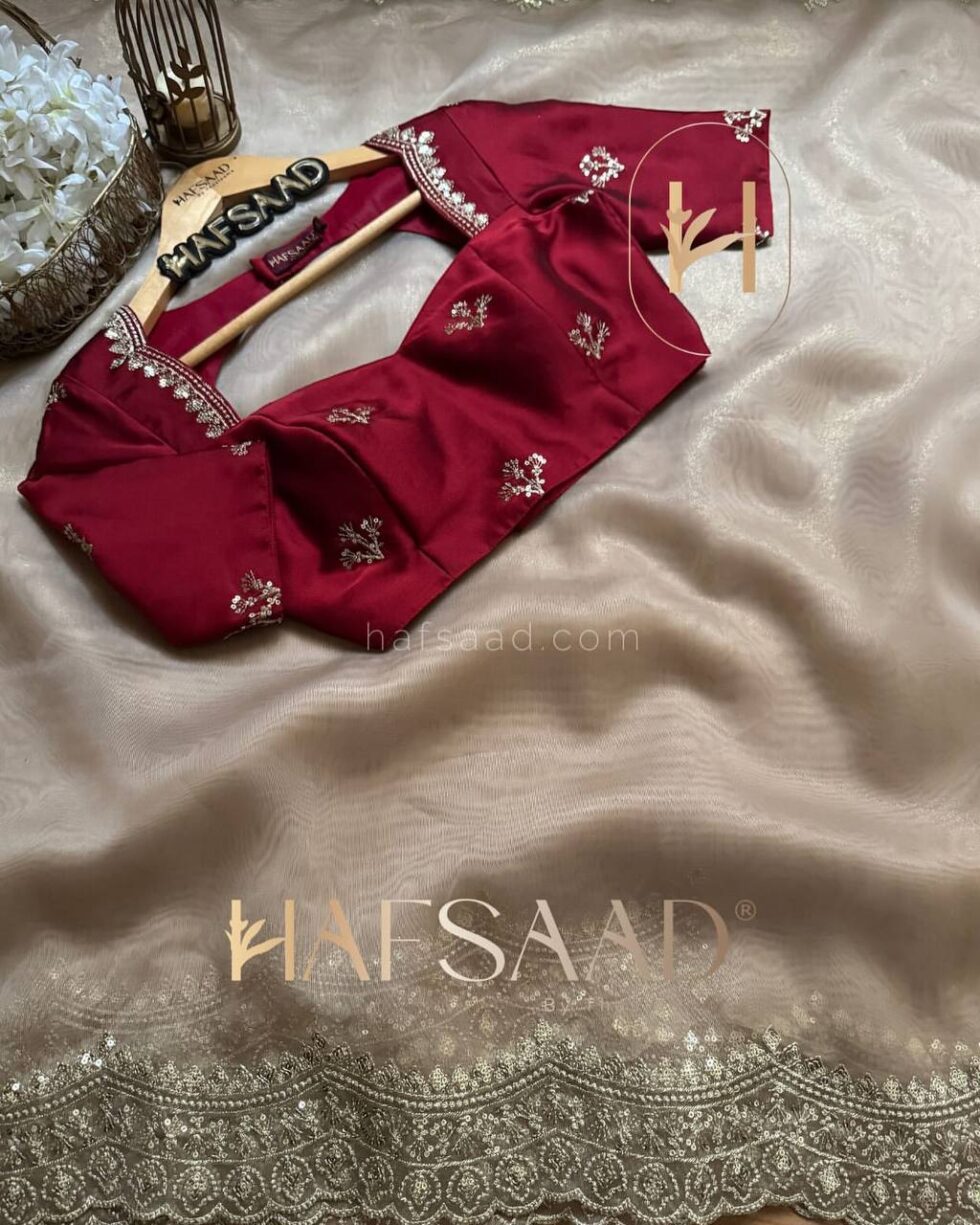 Presenting an exclusive designer creation from Nice Creation, Design No. NC – 5441. This stunning saree is crafted from Heavy Soft Nylon Organza, offering a graceful drape. It features intricate sequins and Zari embroidery work throughout, creating a dazzling effect. The ensemble is completed with a matching blouse in Soft Satin, adorned with coordinating Zari and sequins embroidery. This exquisite and radiant saree is available for βΉ4,698.00, perfect for making a statement.
